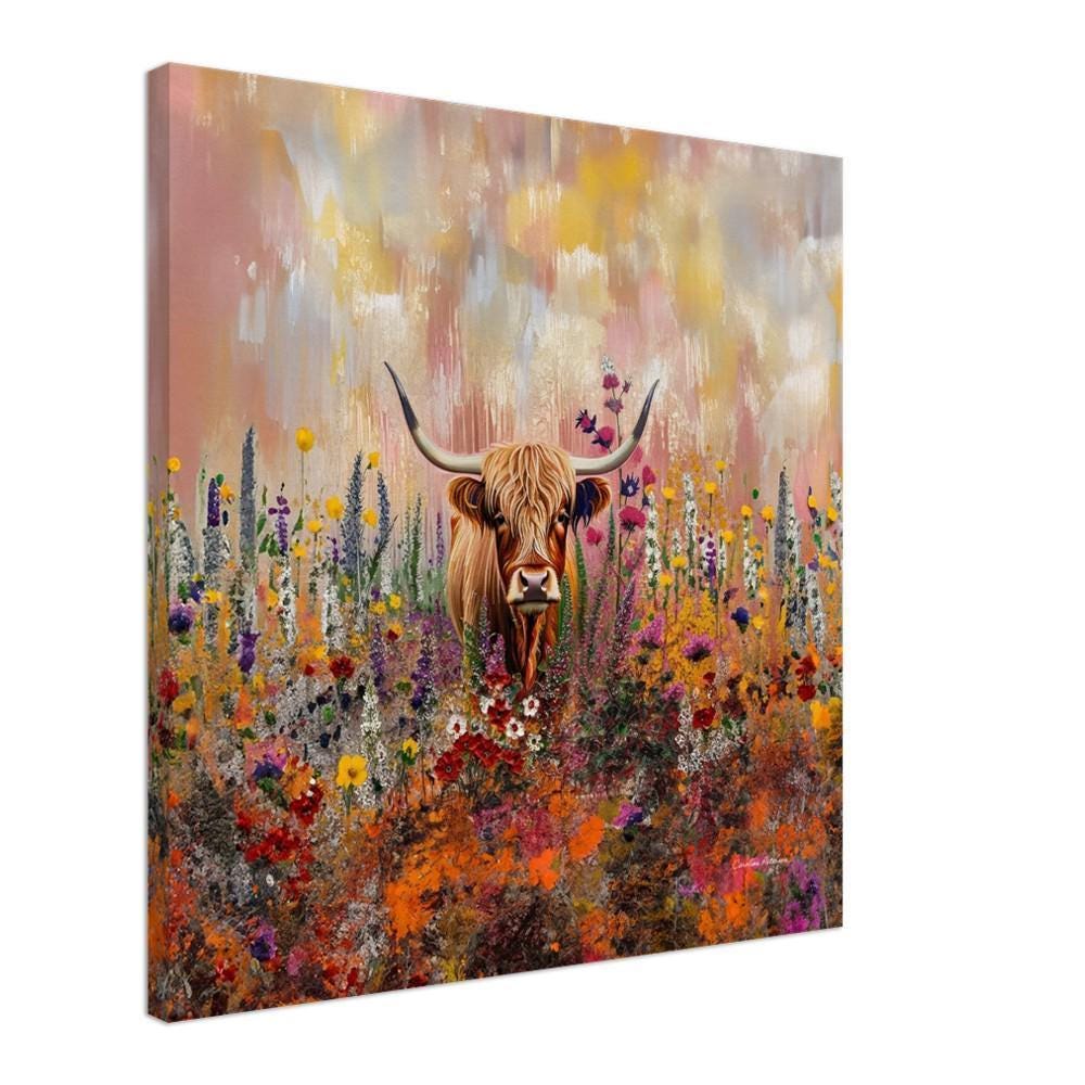 Step into a serene pink floral meadow where a charming hairy cow stands as the centerpiece of this British art piece. Inspired by rustic farm decor and the rich UK cultural heritage, this canvas print brings warmth and countryside charm to any space. Perfect for lovers of rustic farm animals and those seeking museum quality print artwork that celebrates the heart of the British countryside.