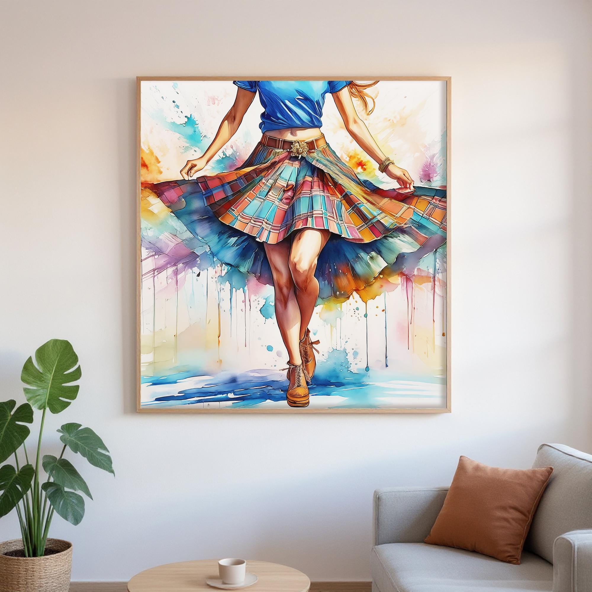 Celebrate the charm of this Scottish Country Dancer watercolor art piece, that brings tradition and elegance into your home. Featuring a graceful Scottish woman in a tartan skirt, this piece embodies the spirit of Scottish heritage and makes a striking addition to any wall.