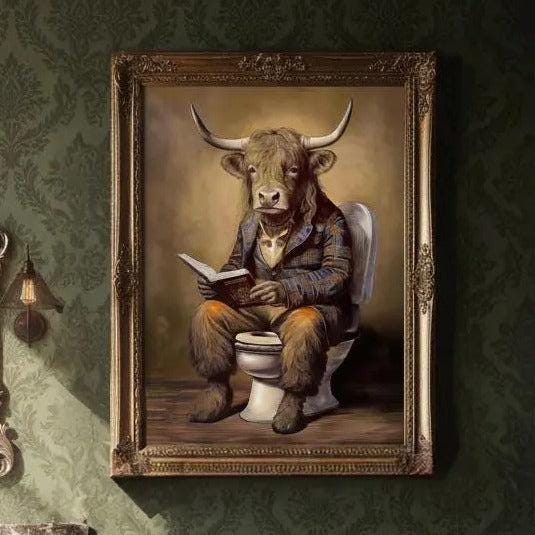 Available in multiple sizes, this humorous art print fits perfectly in bathrooms, kitchens, or any room needing a fun accent. Whether you're searching for a quirky gift for cow lovers or looking to add some Scottish cow charm to your home, this Victorian cow art is sure to spark smiles and conversations.