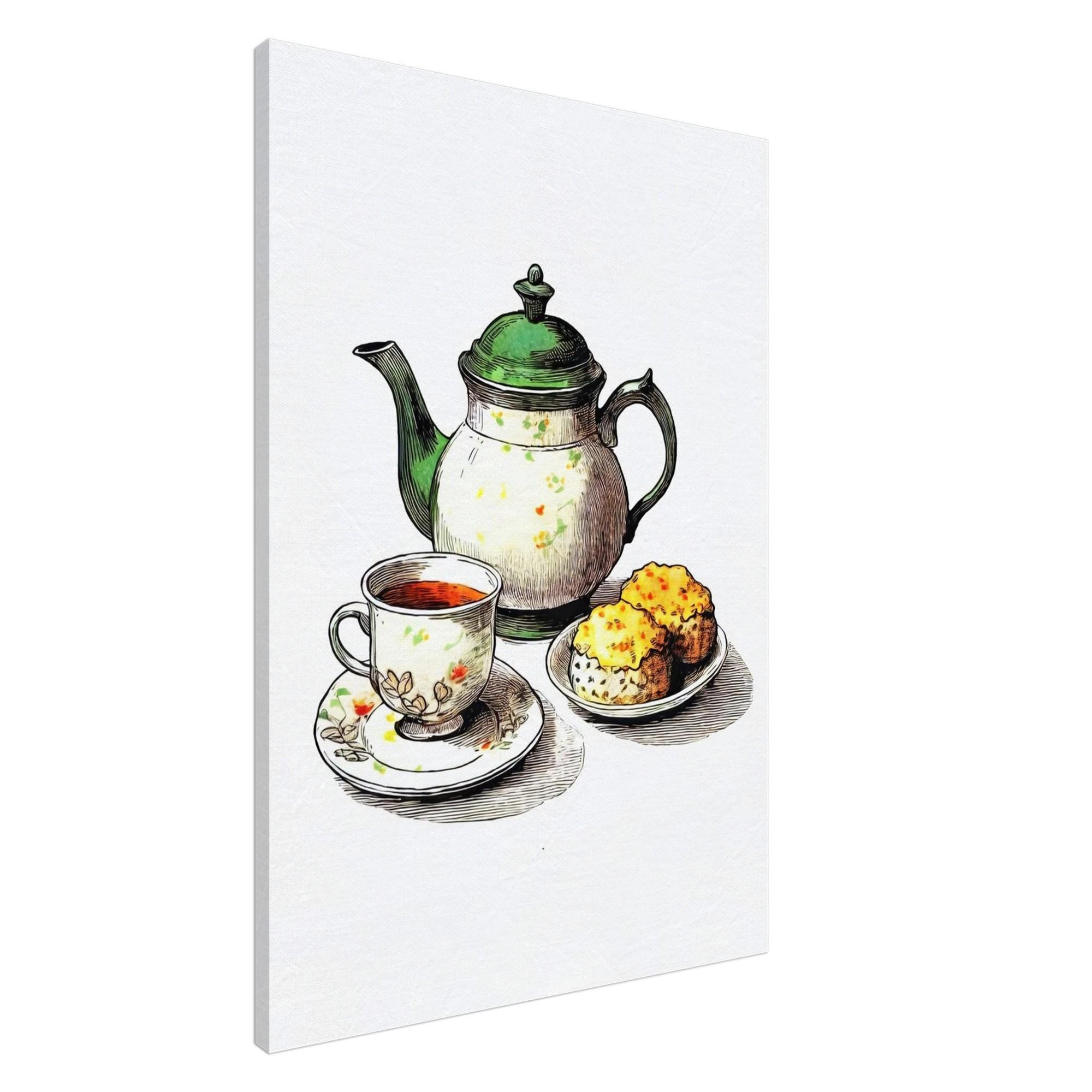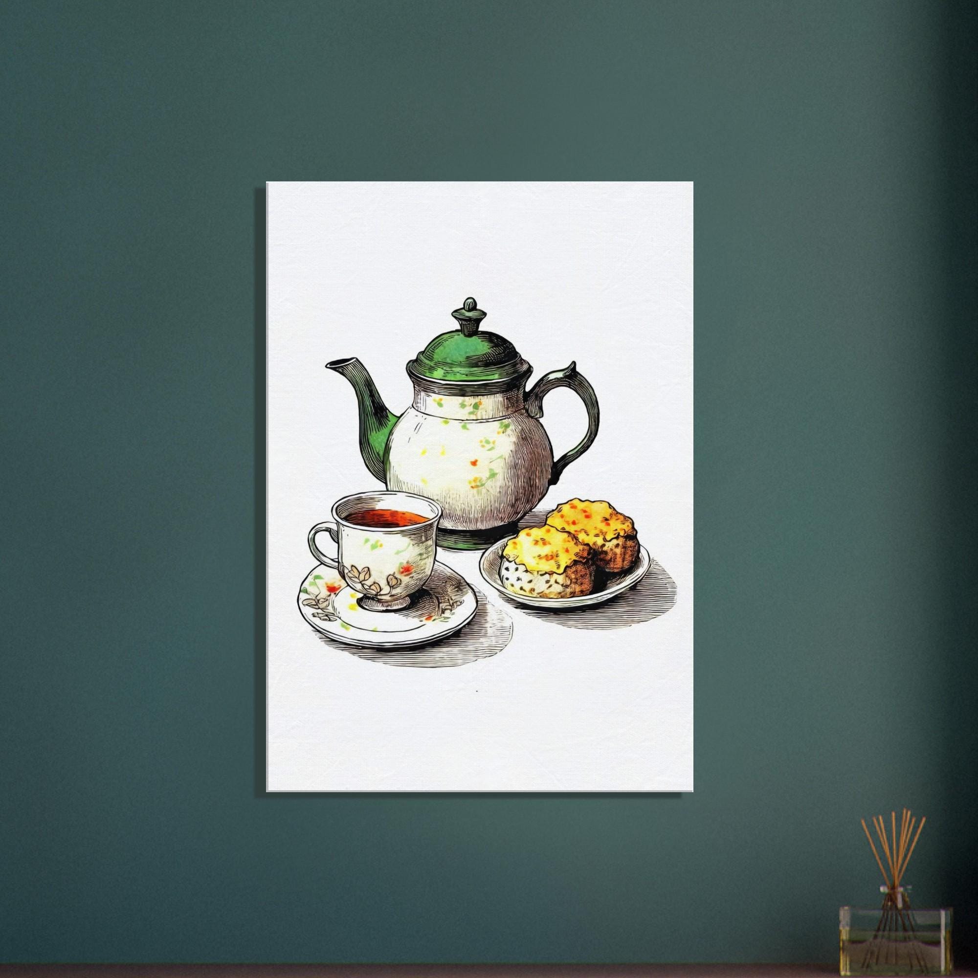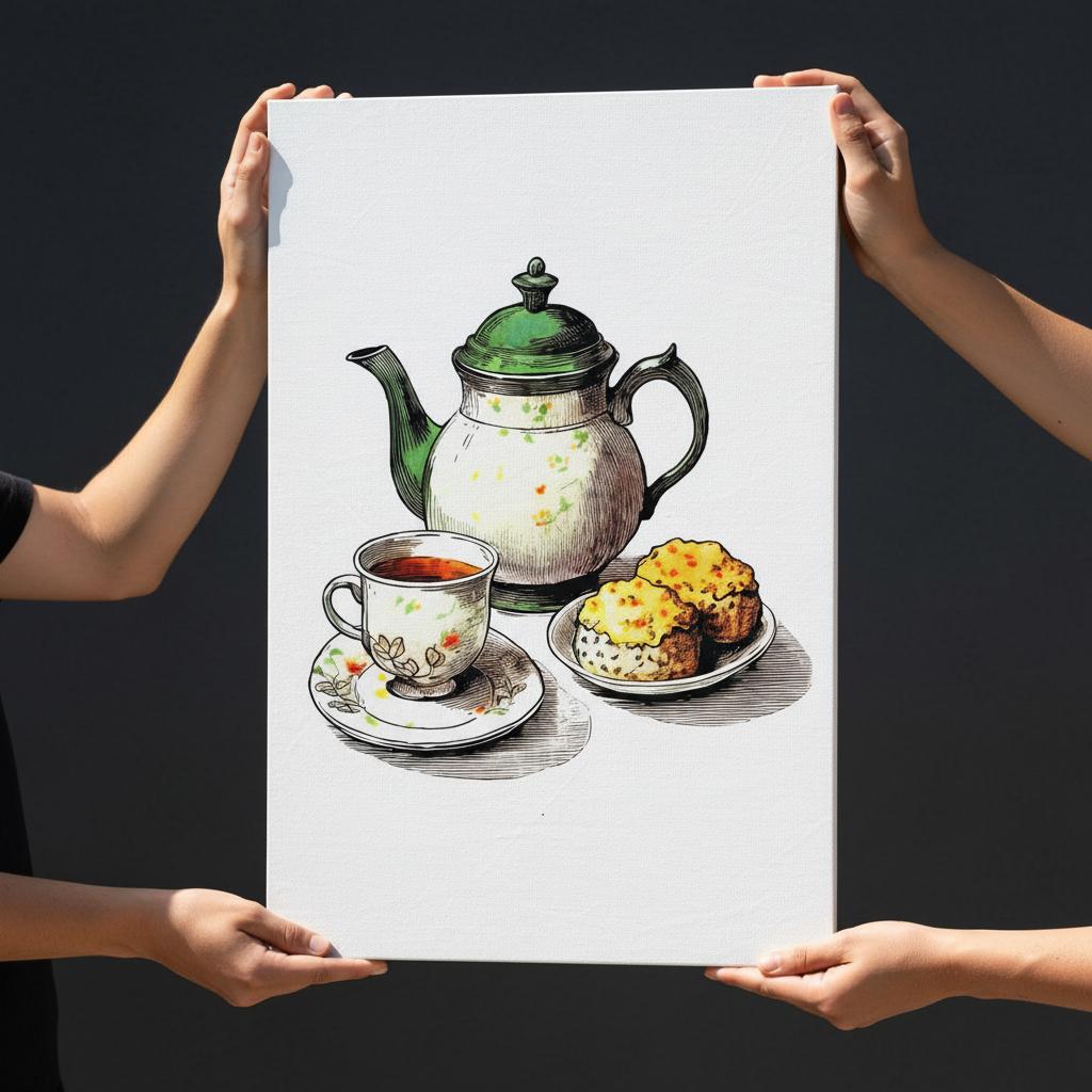 Step into a world of cozy charm with this exquisite tea set canvas print, a perfect tribute to UK heritage art and British home decor. Featuring a graceful teapot alongside tempting scones, this piece captures the warmth of traditional tea time and brings vintage tea art into your everyday living space. Whether displayed in your kitchen or tea room, it invites nostalgia and celebrates the simple joys of cottagecore art.