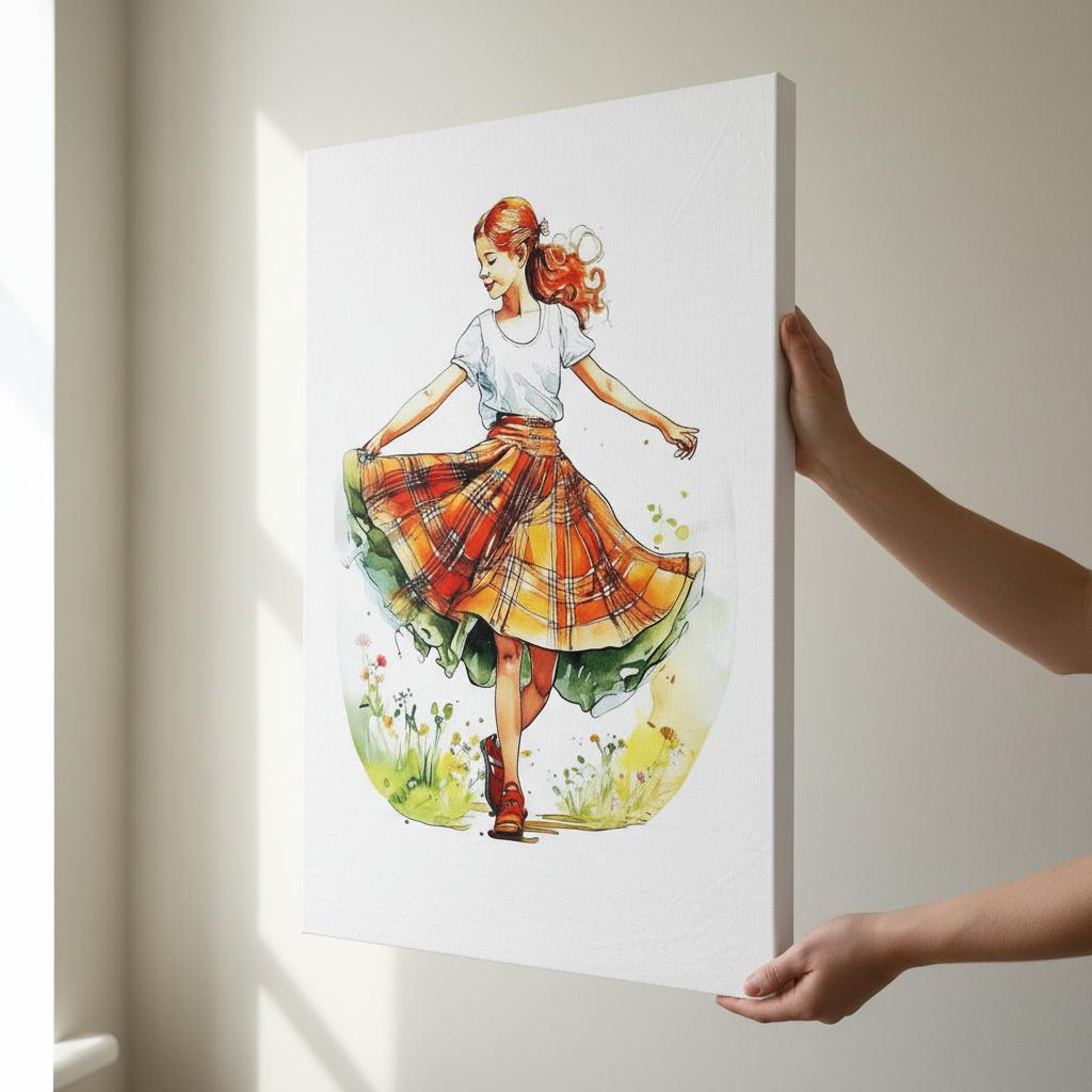 Immerse yourself in the rich tapestry of UK heritage decor with this captivating Scottish Girl canvas print. Inspired by traditional country dancing, this artwork brings a lively slice of Scottish home decor into any space, celebrating cultural pride with every brushstroke. Crafted to enhance your living room or hallway, it’s a beautiful way to honor British home artwork that resonates with warmth and history.