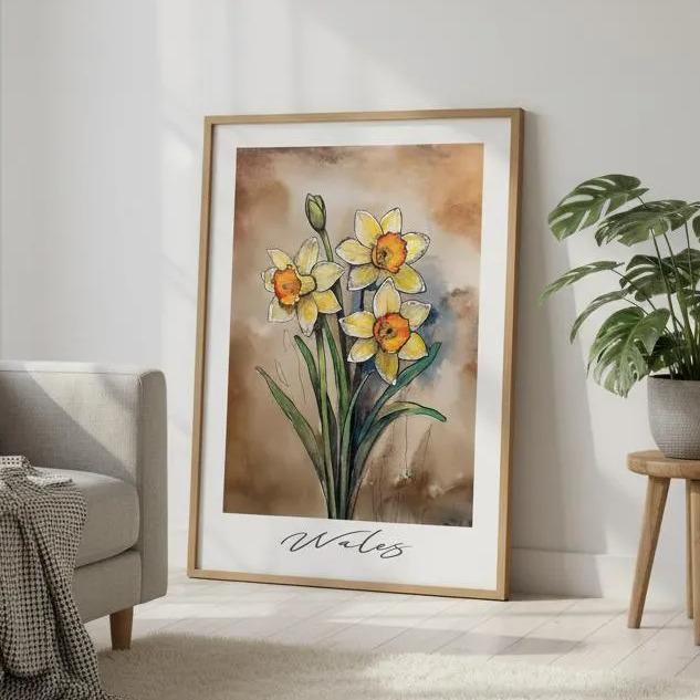 Bring a touch of nature indoors with our stunning Handdrawn Wales Daffodils Framed Poster! This beautiful floral wall art features the delicate and vibrant national flower of Wales, perfect for adding a warm and inviting atmosphere to any space. Whether you're decorating a cozy living room, brightening up a bedroom, or looking for the ideal gift for a loved one, this poster is sure to charm.